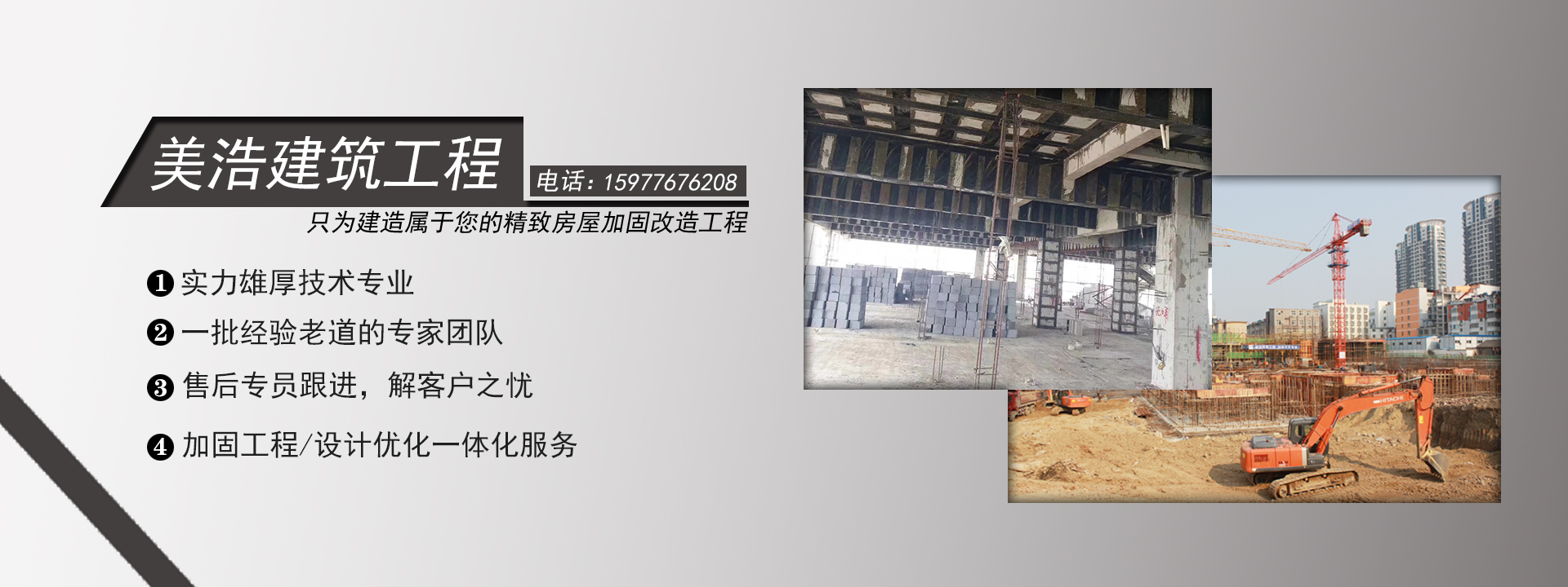 廣西美浩建筑工程有限公司,位于千年古縣,十載新區的廣西省南寧市邕寧區。注冊資金1080萬元,是一家專業提供鋼筋混泥土切割,水下切割、加固、植筋、鉆孔、補強、切割加固、房屋切割加固/破碎拆除、橋梁切割加固/破碎拆除、建筑切割加固/破碎拆除等特種工程。美浩建筑擁有專業的施工團隊和齊全的設備為基礎,保障客戶項目按質按量的順利完成。公司長期與中鐵四局、中鐵建、中交、中建等建筑集團合作。目前公司擁有設備:繩鋸切割機,馬路碟鋸機,水鉆機,風炮機,挖機,鉆孔機等特種設備。